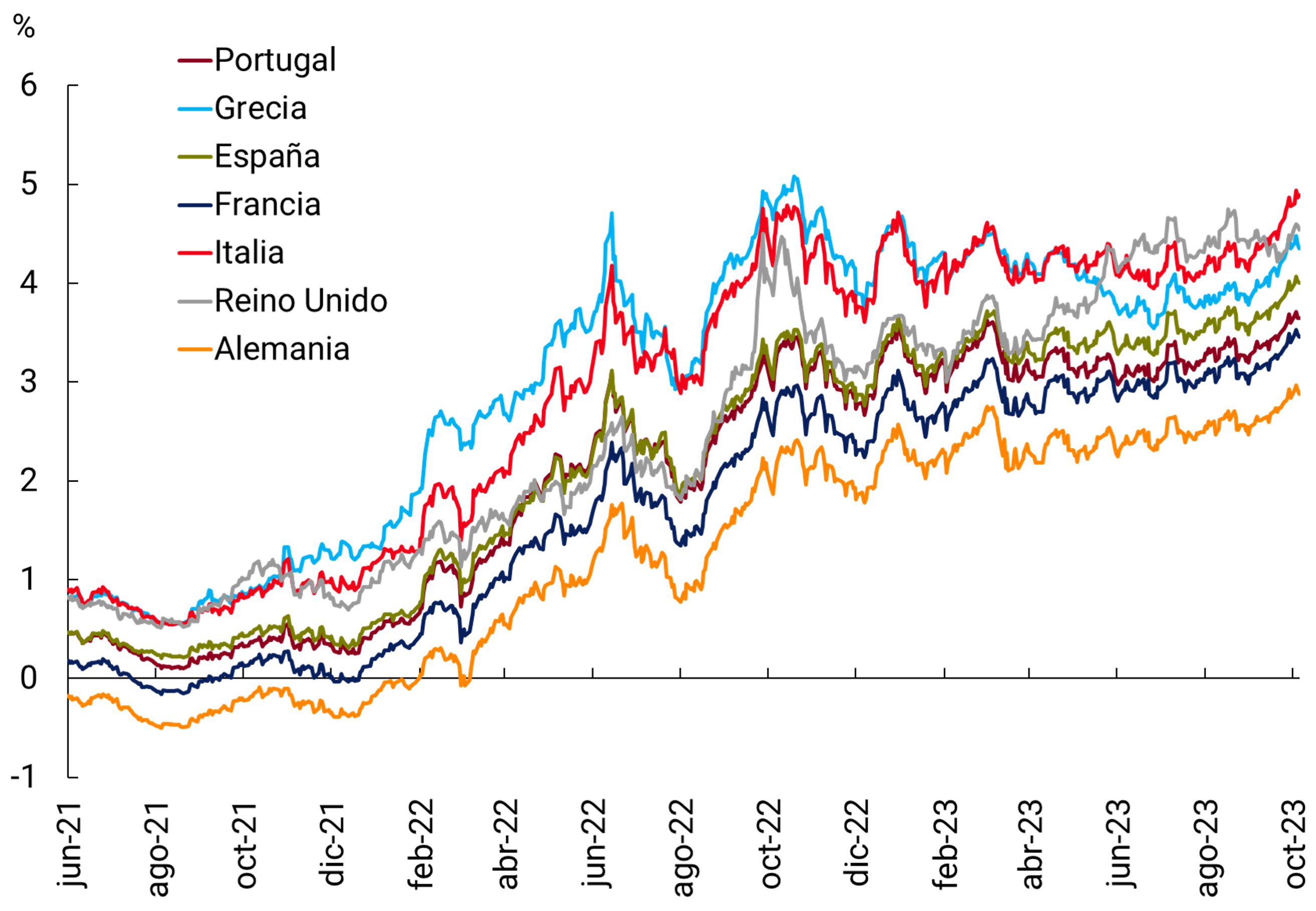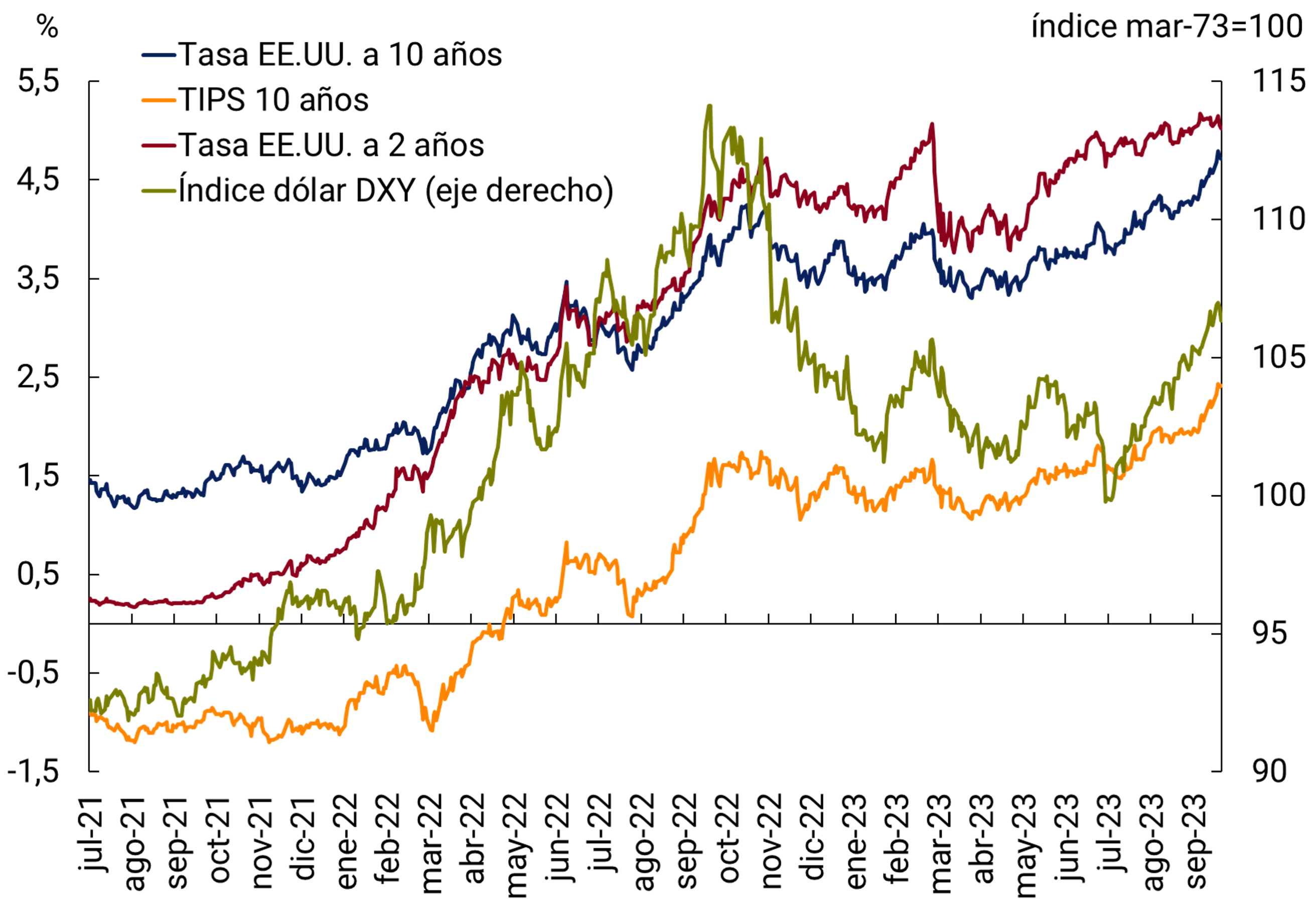 2.3. Mercados: tasas de interés más altas por más tiempo, con impacto sobre bonos, acciones y divisas