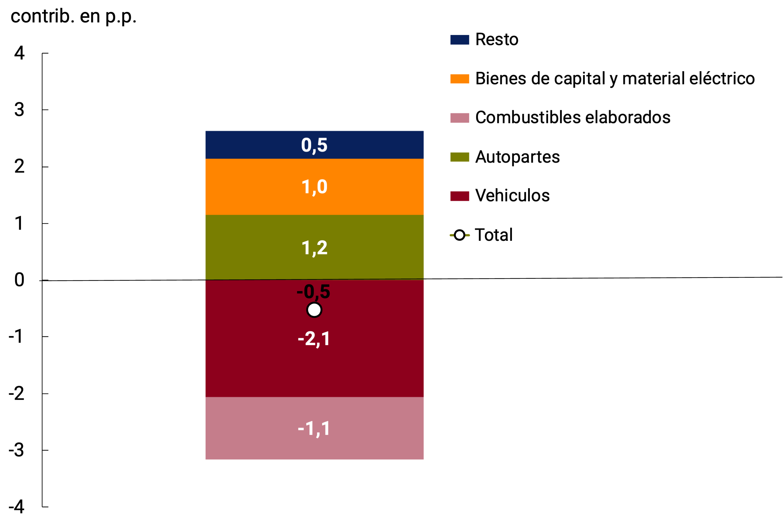 3.1.3. Desde el punto de vista de la demanda, la menor actividad durante el segundo trimestre se explicó por la caída de las exportaciones netas, la desacumulación de stocks y la reducción del consumo privado