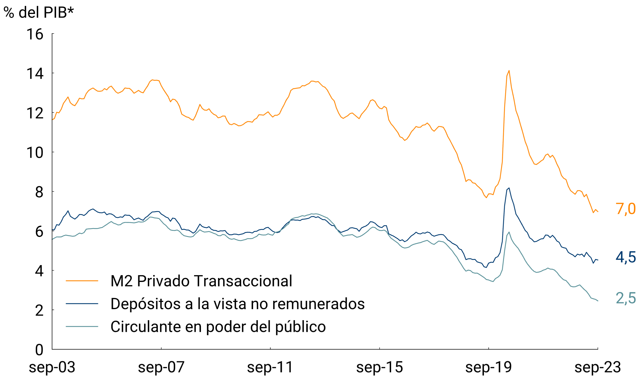 76 Los medios de pago se miden a través del M2 privado transaccional, que corresponde al M2 privado neto de depósitos a la vista remunerados.