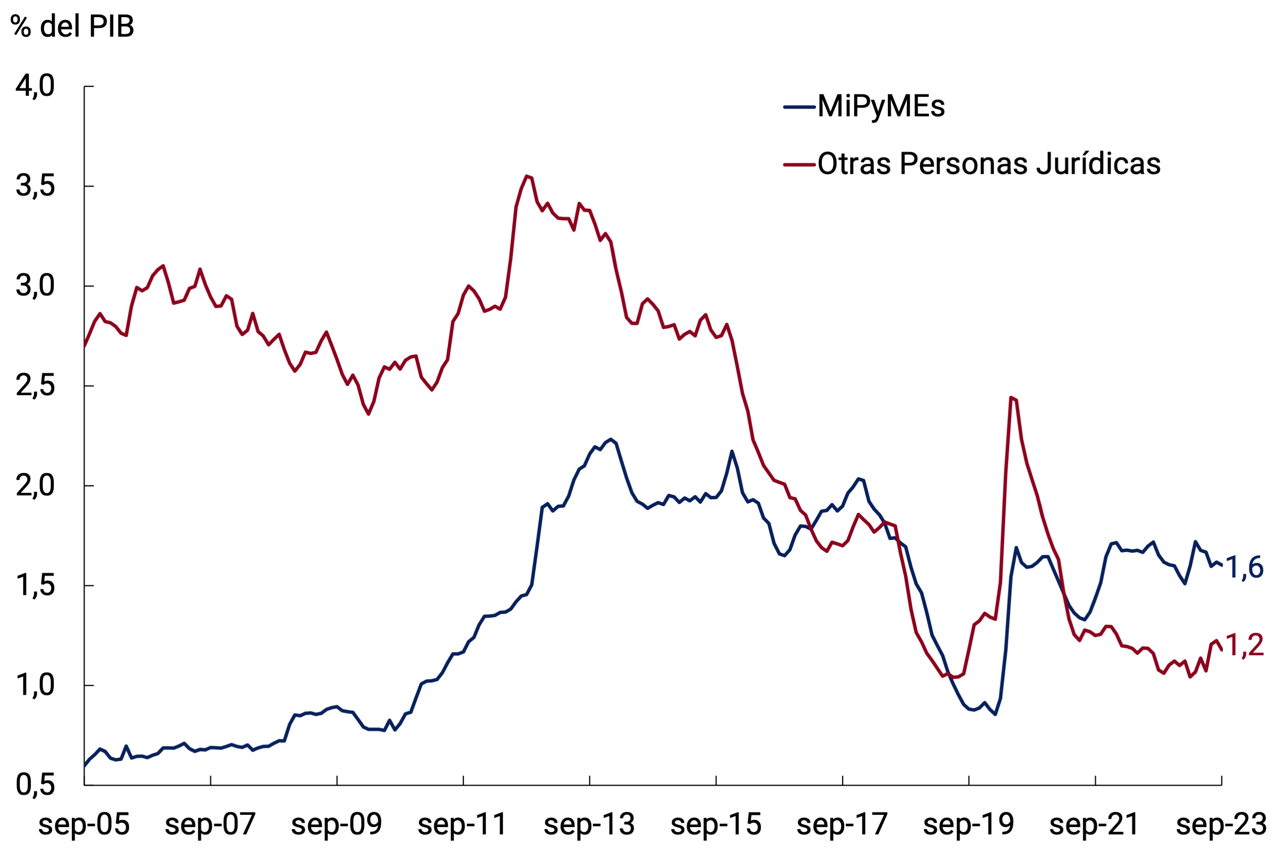 En Argentina la actividad económica se contrajo en el segundo trimestre del año, como consecuencia de la severa sequía que afectó principalmente la cosecha gruesa, tal como se había anticipado en el IPOM anterior. Por su parte, el nivel de actividad del conjunto de los sectores no agropecuarios se mantuvo estable respecto al primer trimestre y también en términos interanuales, con las actividades más vinculadas al agro contrayéndose y el resto creciendo. El empleo formal en los sectores no agropecuarios continuó aumentando. La demanda interna se mantuvo relativamente estable respecto al primer trimestre, con cierta heterogeneidad entre sus componentes. La contracción de las exportaciones netas, caída de existencias, ambas afectadas por la sequía, y la merma en el consumo privado fueron parcialmente contrarrestadas por el aumento de la inversión. Hacia delante se espera que el conjunto de políticas de refuerzo de ingresos implementadas por el Gobierno Nacional contribuya a sostener la demanda interna, en un contexto de elevada inflación e incertidumbre asociada al período electoral.