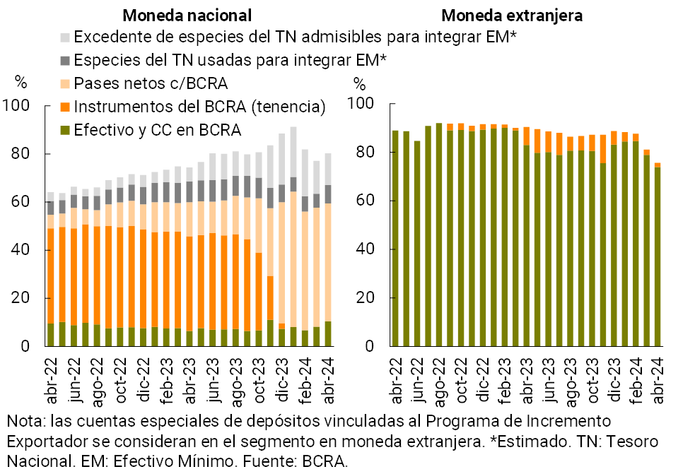 3 Cabe señalar que durante abril se dispuso que los saldos a la vista de los Fondos Comunes de Inversión de Mercado de Dinero en las entidades deban integrar una exigencia de efectivo mínimo del 10% (Comunicación A 7988).