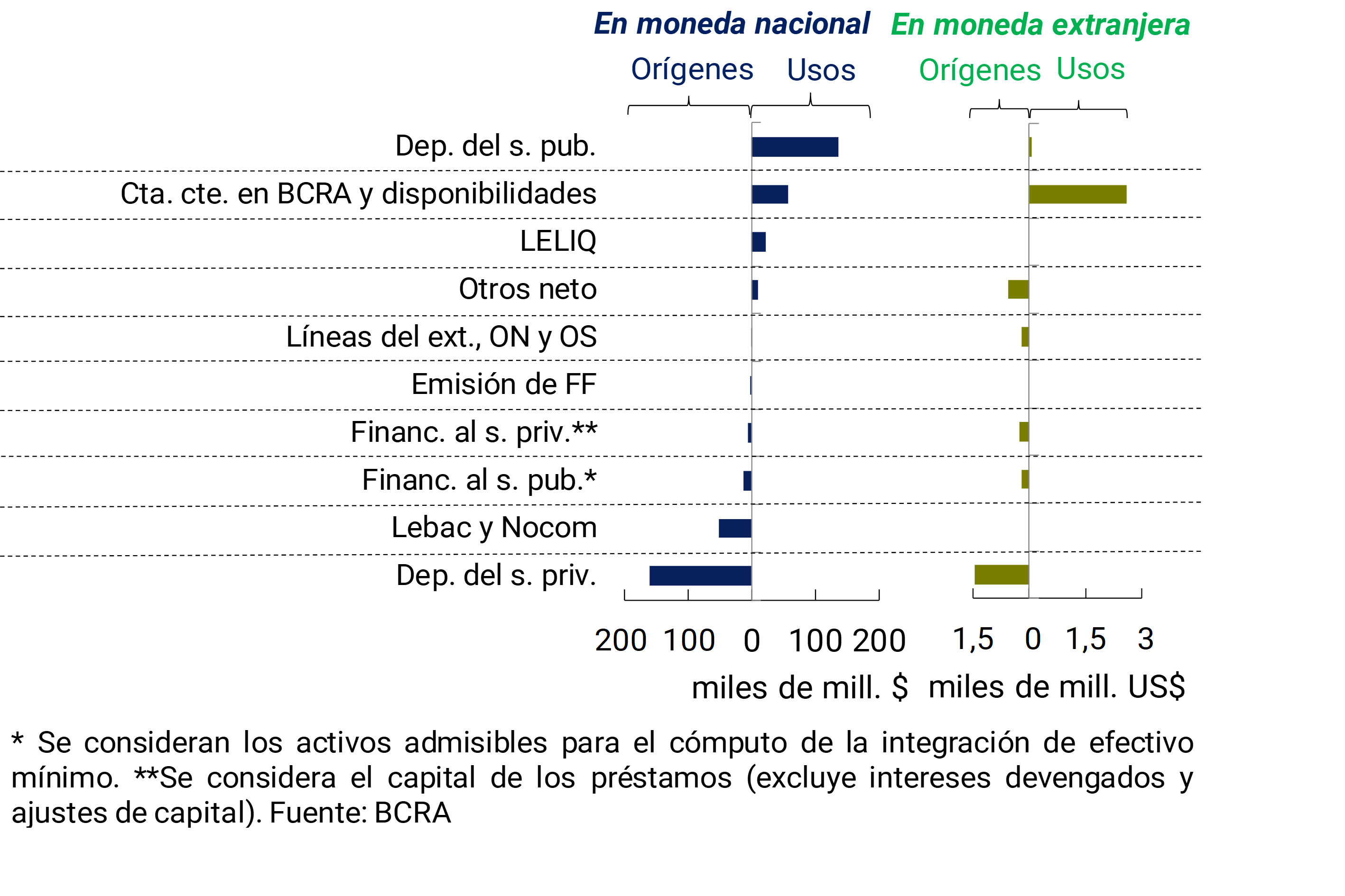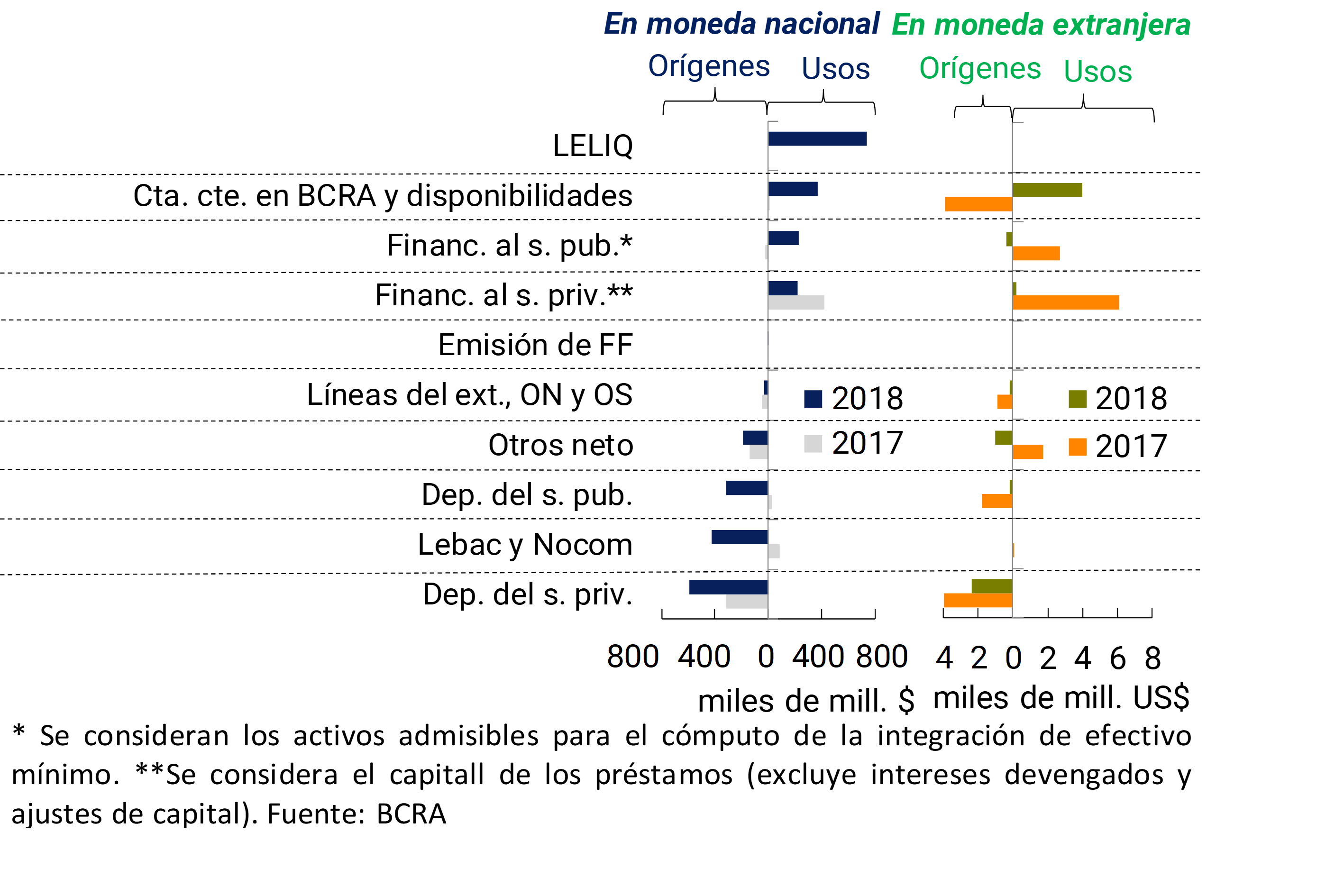6 Los principales orígenes y usos de recursos estuvieron influenciados por cuestiones estacionales propias de fin de año y ciertos movimientos puntuales. Para mayor detalle ver la sección III. Depósitos y Liquidez de este Informe.