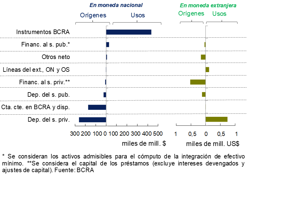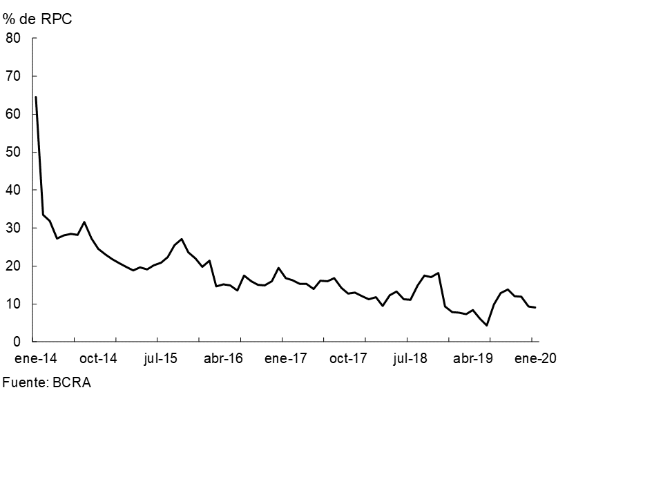 7 A los fines de la integración de Efectivo Mínimo en pesos, diciembre 2019 y enero 2020 conformaron un período conjunto de computo. Dado que las entidades financieras finalizaron diciembre con un excedente parcial en la integración, en enero pudieron compensarlo con menores integración.