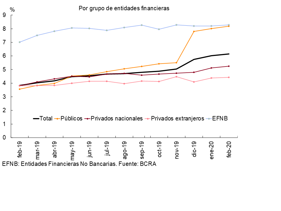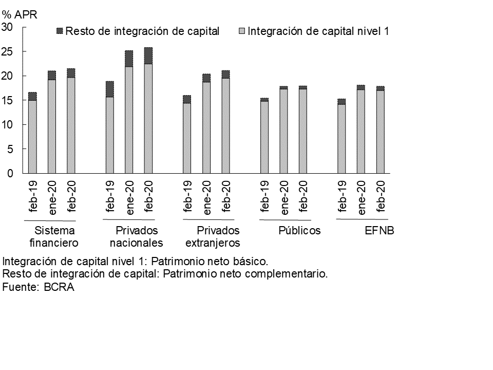 4En la comparación interanual de este indicador, debe considerarse el efecto de la entrada en vigencia de un conjunto de modificaciones en los criterios contables a principios de 2020 (para más información, ver Informe sobre Bancos Edición de Enero de 2020).