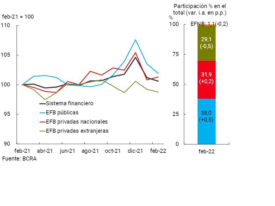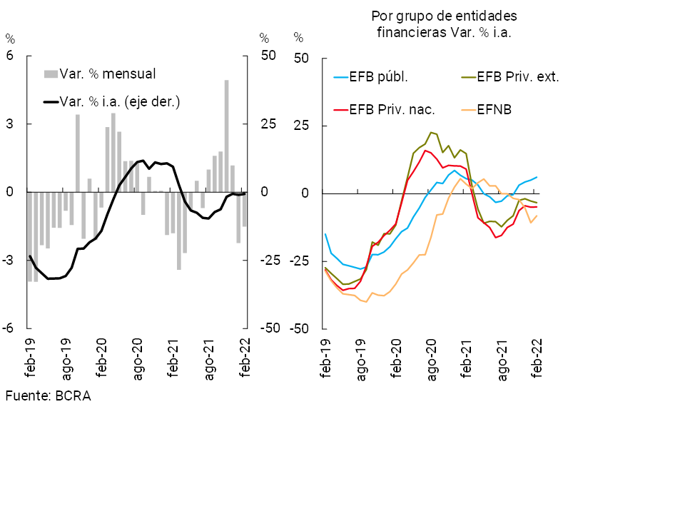 1Diferencias de saldos de balance expresadas en moneda homogénea. Información extraída del Régimen Informativo Contable Mensual de Balance de Saldos (febrero de 2022 última información disponible al momento de publicación de este Informe).