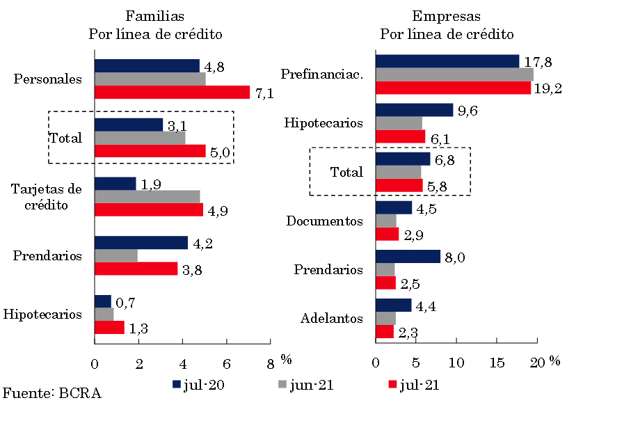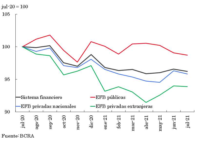 1 Diferencias de saldos de balance expresadas en moneda homogénea. Información extraída del Régimen Informativo Contable Mensual (julio 2021última información disponible al momento de publicación de este Informe).