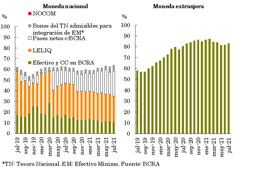 12 Cabe recordar que en junio entró en vigencia la normativa que permite a las entidades financieras integrar con títulos públicos nacionales en pesos -siempre y cuando verifiquen determinadas condiciones- lo admisible con LELIQ. Para mayor detalle, ver Comunicación “A” “7290”.