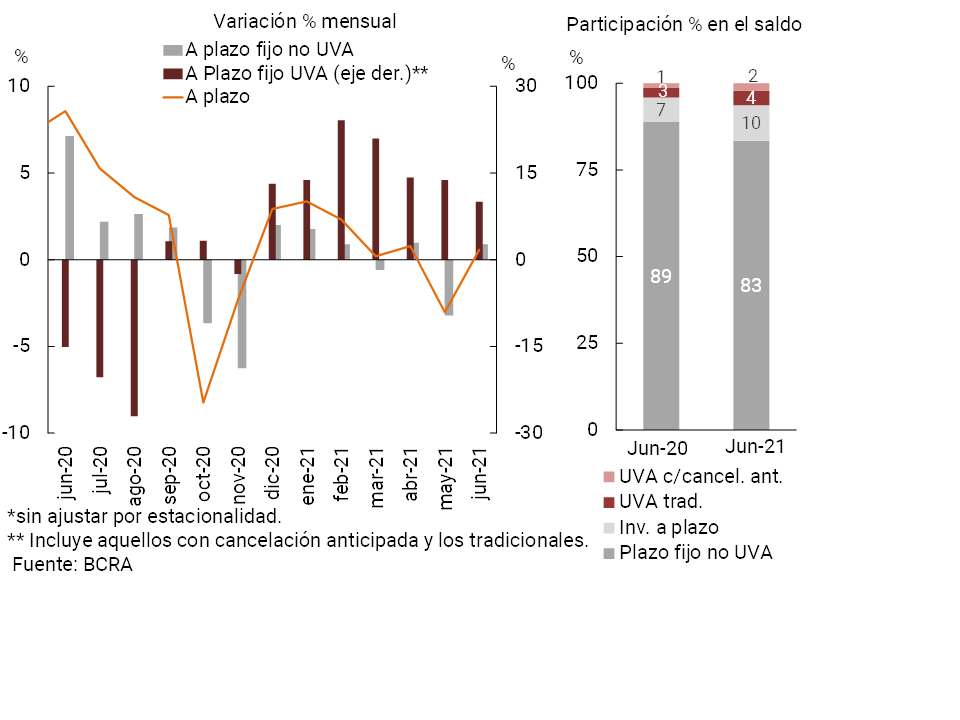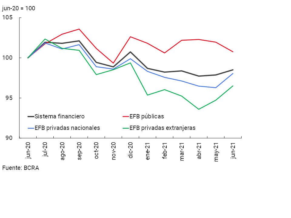 1Diferencias de saldos de balance expresadas en moneda homogénea. Información extraída del Régimen Informativo Contable Mensual (junio 2021 última información disponible al momento de publicación de este Informe).