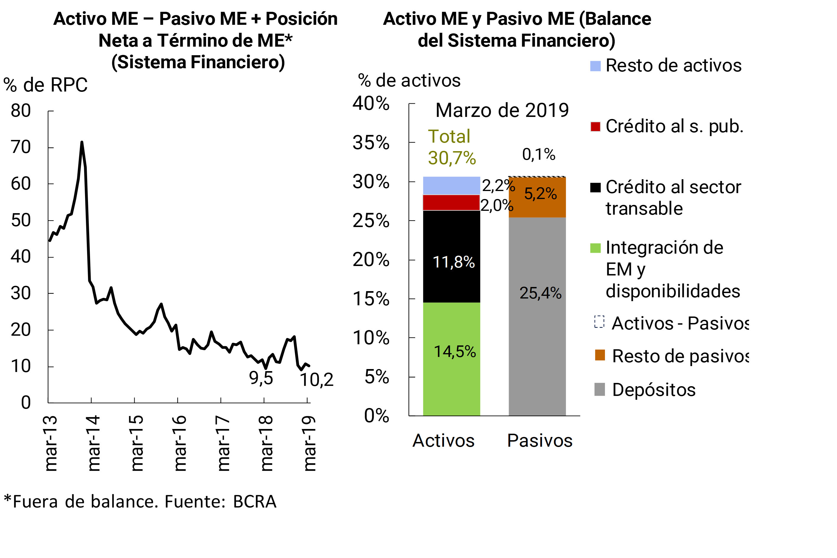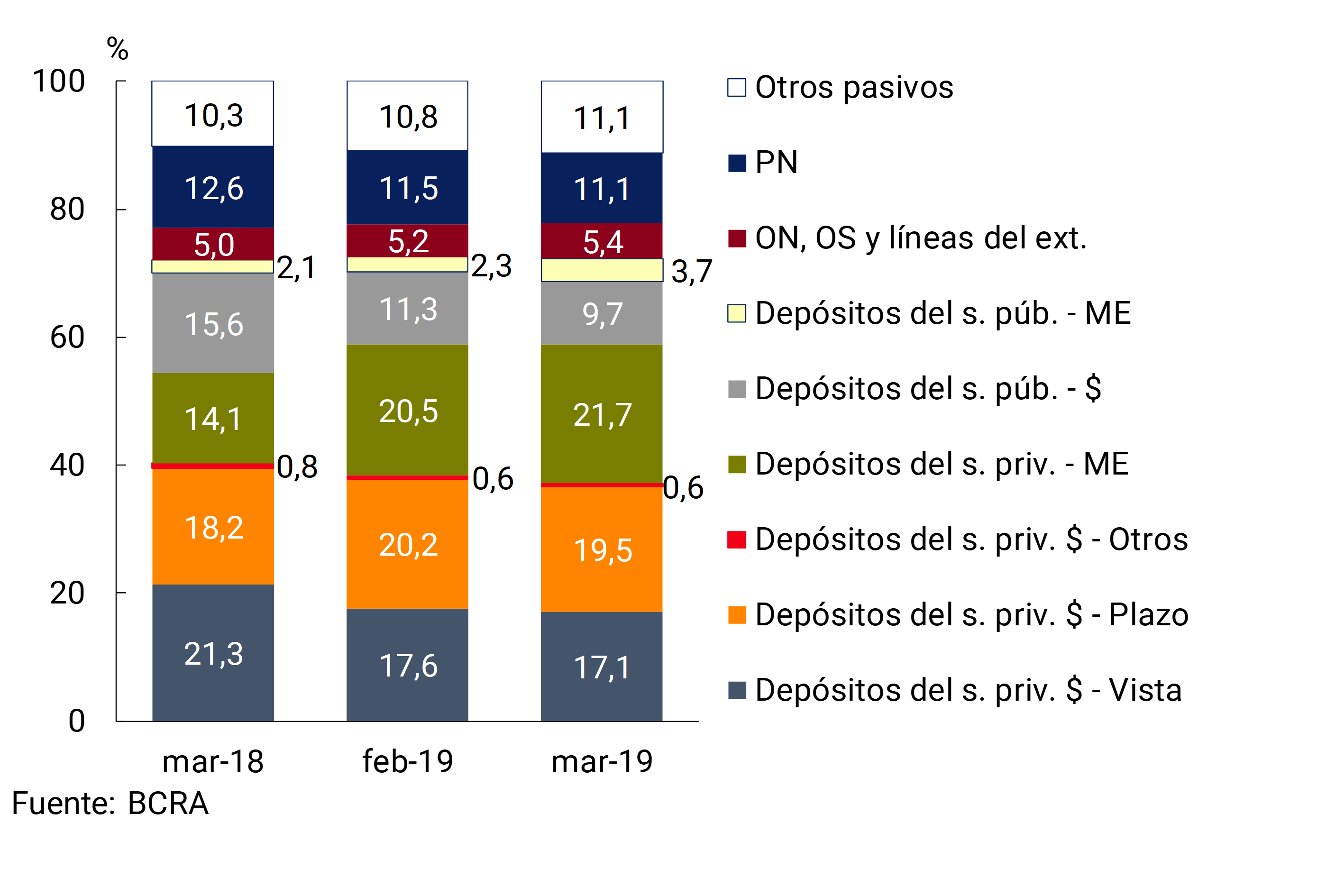 5 El aumento del tipo cambio nominal peso-dólar en marzo (11,2%) influyó sobre la re-expresión en pesos de las partidas de balance en moneda extranjera.