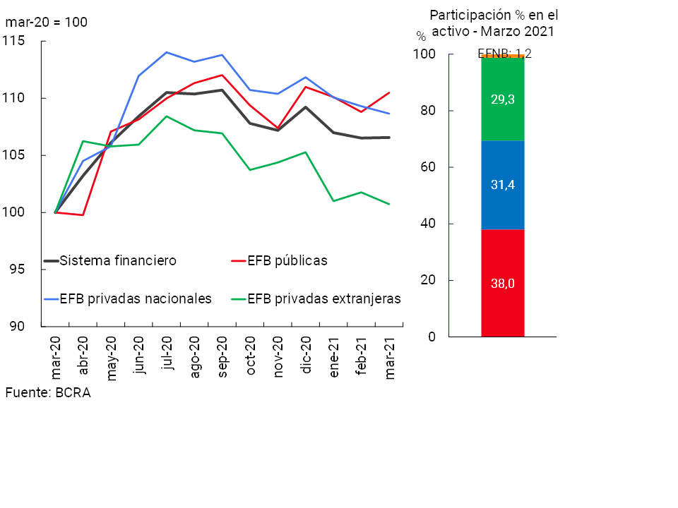 • En marzo el sistema financiero desarrolló su actividad preservando niveles elevados de liquidez y solvencia, en un marco signado por el agravamiento de la situación sanitaria con impacto sobre la recuperación de la actividad económica en el que se atemperó la intermediación financiera con el sector.
