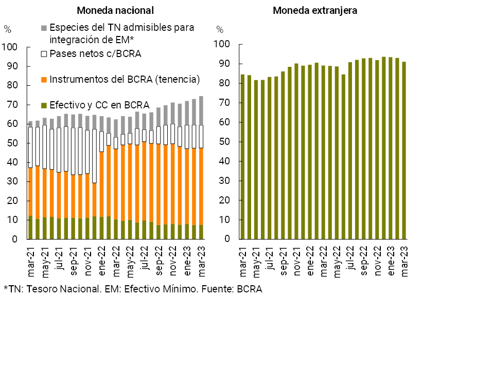 12 Considera disponibilidades, instrumentos del BCRA en moneda nacional y extranjera, y la totalidad de títulos públicos habilitados para utilizar como integración de efectivo mínimo.