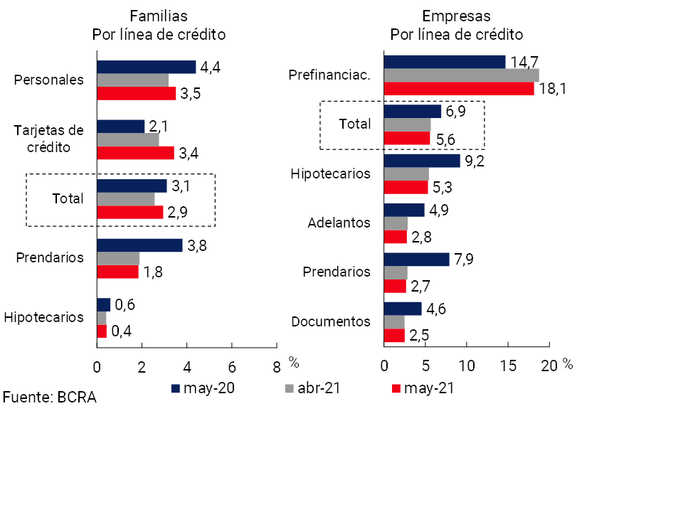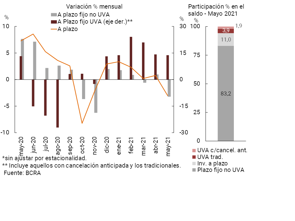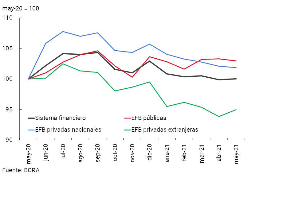 2 Diferencias de saldos de balance expresadas en moneda homogénea. Información extraída del Régimen Informativo Contable Mensual (mayo 2021 última información disponible al momento de publicación de este Informe).