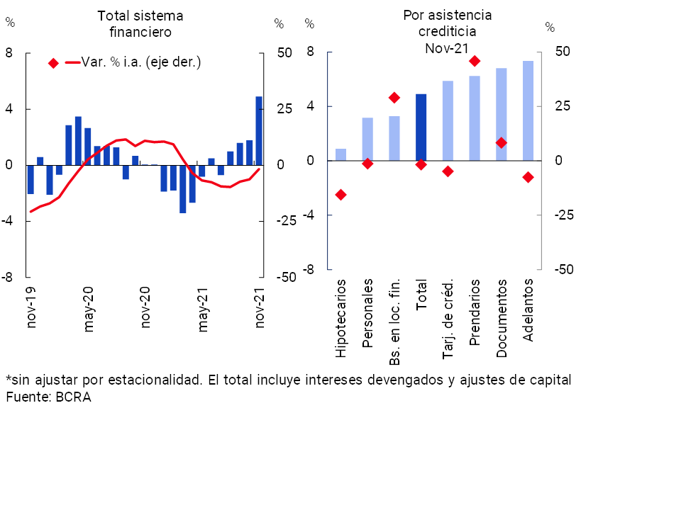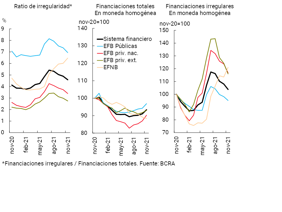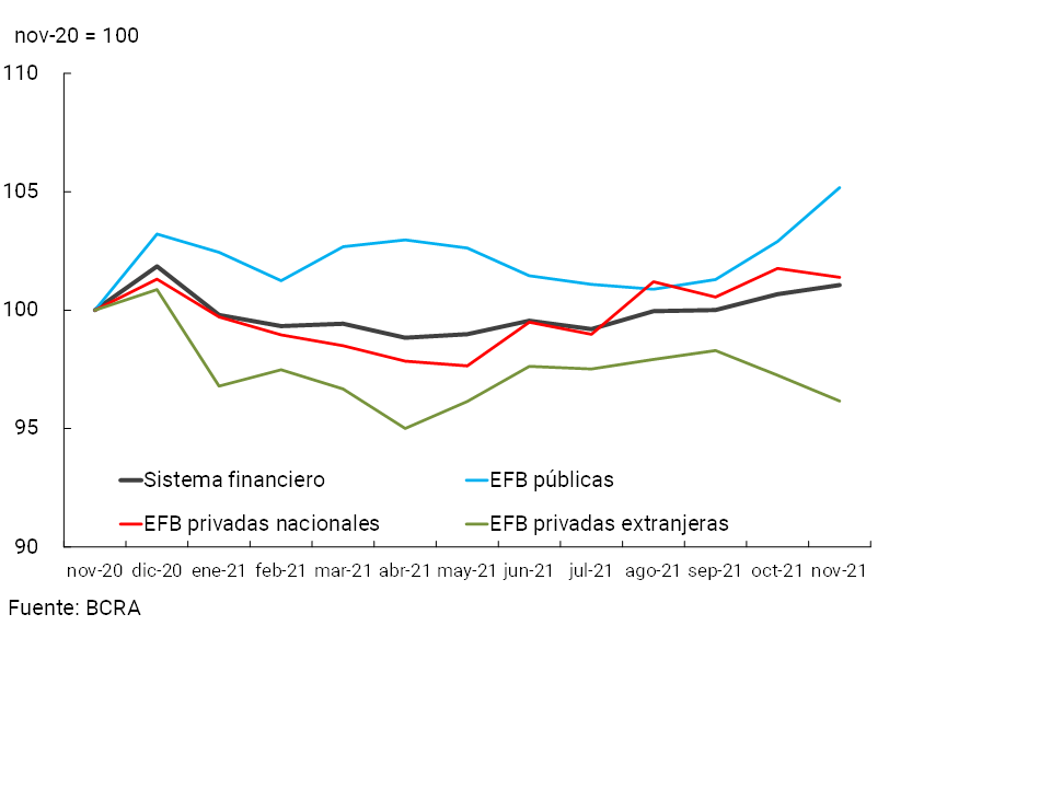 1Diferencias de saldos de balance expresadas en moneda homogénea. Información extraída del Régimen Informativo Contable Mensual de Balance de Saldos (noviembre 2021 última información disponible al momento de publicación de este Informe).