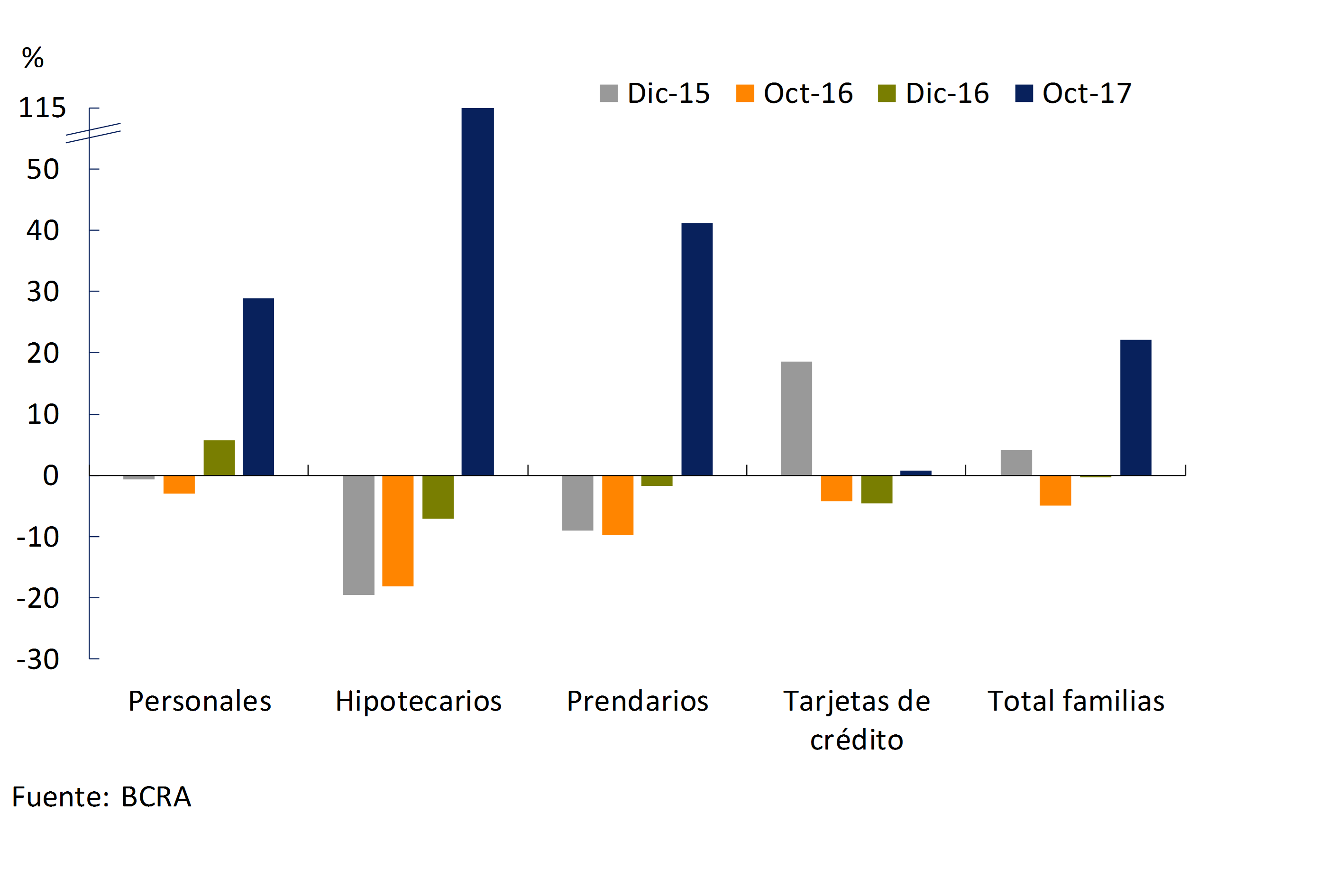 11 Información extraída de la Central de Deudores (comprende tanto moneda nacional como extranjera). No se incluyen los créditos a residentes en el exterior. Las financiaciones a empresas se definen aquí como aquellas otorgadas a per-sonas jurídicas y el financiamiento comercial otorgado a individuos. Por su parte, se considera préstamos a familias a aquellos otorgados a individuos, excepto que tengan destino comercial.