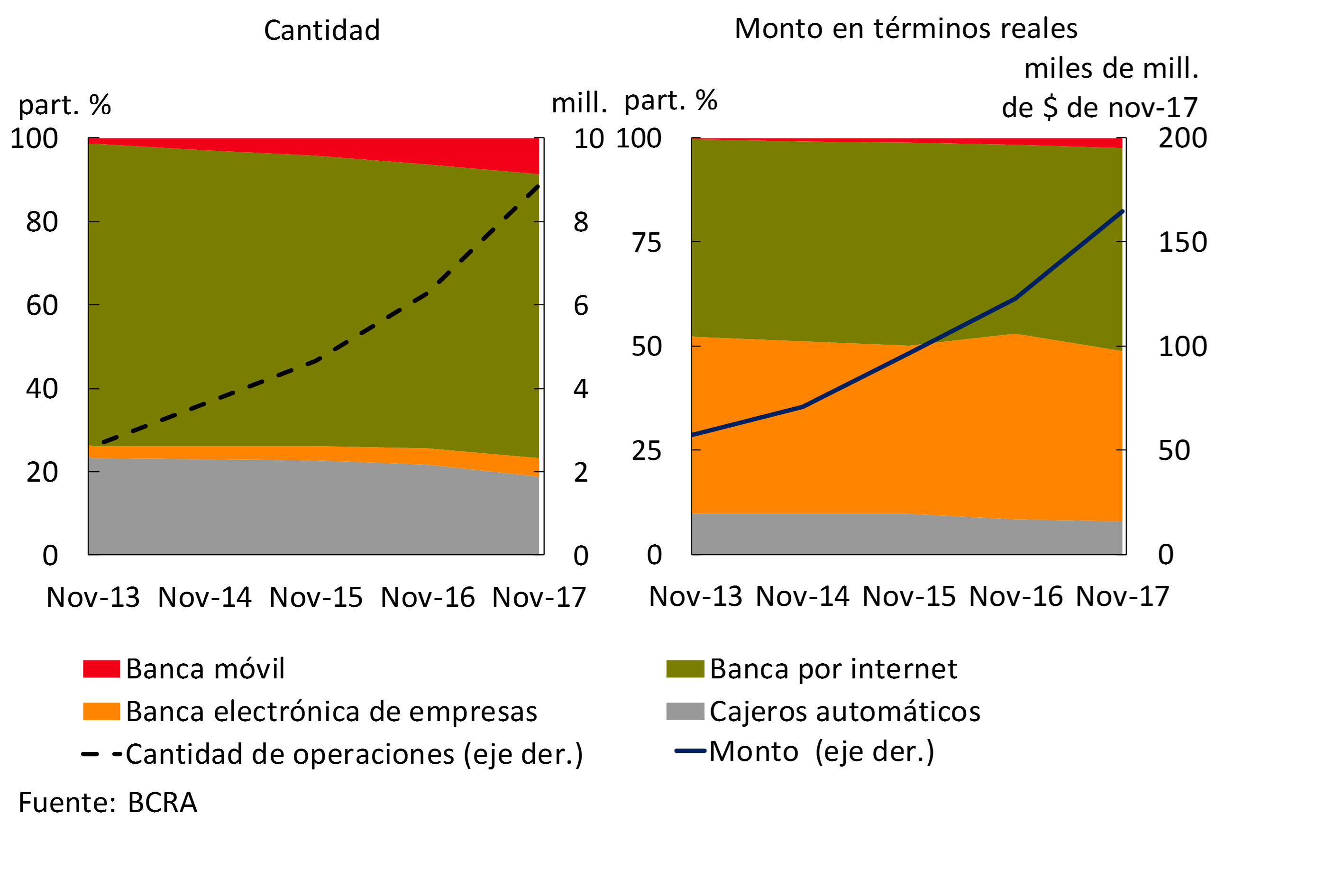 Con el fin de darle un uso más eficiente al dinero en efectivo y en virtud de los avances tecnológicos, a fines de noviembre el Gobierno Nacional dispuso que las empresas dedicadas al servicio electrónico de pagos y/o cobranzas por cuenta y orden de terceros, de facturas de servicios públicos, impuestos y otros servicios puedan ofrecer el servicio de retiro y depósito de efectivo con tarjeta bancaria4.
