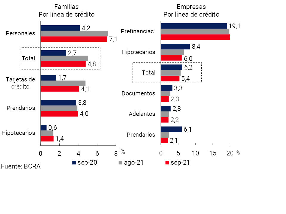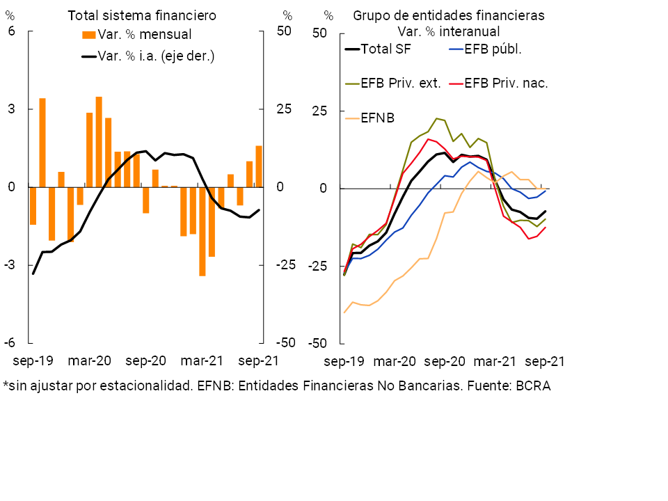 1Diferencias de saldos de balance expresadas en moneda homogénea. Información extraída del Régimen Informativo Contable Mensual (septiembre 2021 última información disponible al momento de publicación de este Informe)